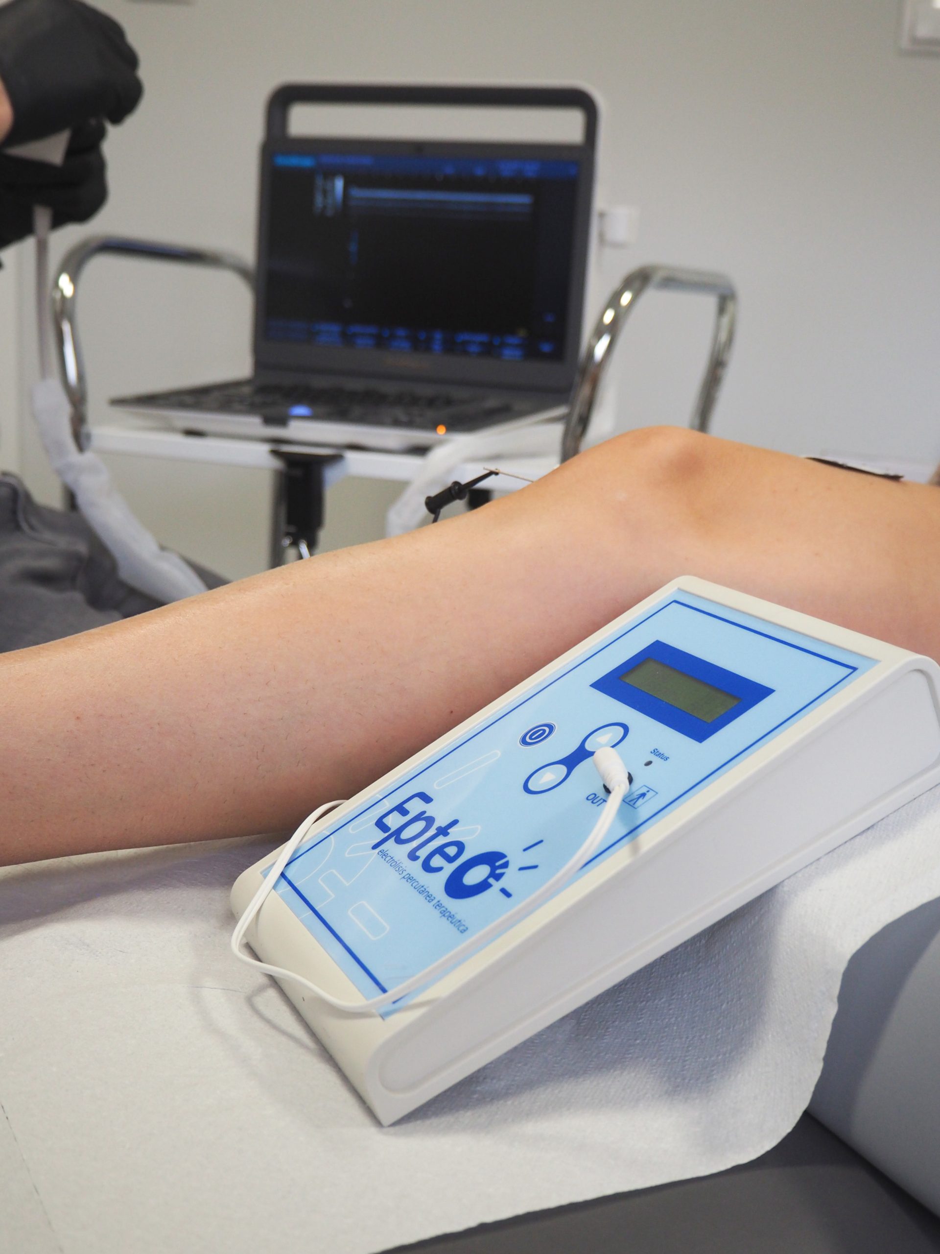 Przezskórna elektroliza EPTE® to metoda wykorzystywana głównie do leczenia tendinopatii. Zabieg wykonywany jest za pomocą profesjonalnego aparatu generującego modulowany prąd elektryczny. Mikroprądy o małej intensywności są aplikowane za pomocą elektrody igłowej, tj. igły używanej do akupunktury. Elektroliza wykonywana jest pod kontrolą USG, co zapewnia precyzyjne oddziaływanie na centrum zmienionej chorobowo tkanki. Celem zabiegu jest wytworzenie kontrolowanego stanu zapalnego w ścięgnie, w którym występują zmiany chorobowe, aby w ten sposób pobudzić je do regeneracji i w efekcie do odbudowy prawidłowej struktury ścięgna.